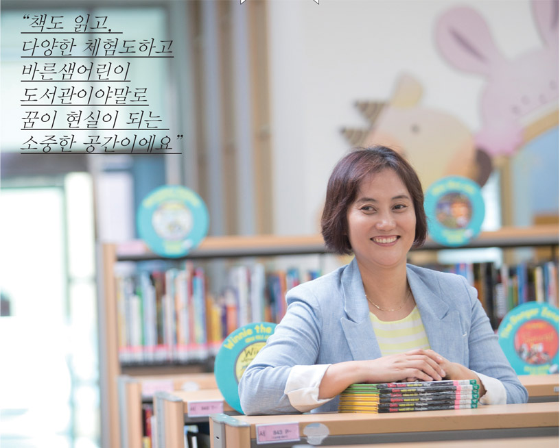 바른샘어린이도서관과의 인연은 지금 고등학생인 자녀들이 유치원 때부터입니다. 아이들을 데리고 어디에 가서 시간을 보낼까 고민하다 들른 바른샘어린이도서관. 그 당시엔 참 신선한 충격이었어요. 도서관은 책이 가득한 조용한 곳으로만 여겼는데, 그 안에서 책을 통한 다양한 놀이를 하는 아이들을 보며 가슴이 뛰었죠. 그곳에서 자원봉사하는 분들을 보며 막연하게 봉사하고 싶다는 생각도 했고요. 꾸준히 도서관에 관심을 가진 덕분에 바른샘어린이도서관과 영통 반달도서관 등에서 자원봉사를 하며 지내고 있어요. 아이들 앞에서 큰 그림책을 놓고 구연동화를 하기도 하고, 학부모님들께 북스타트 프로그램도 알리는 등 다양한 활동을 하고 있습니다. 봉사하며 느낀 점은 도서관, 특히 어린이도서관은 아이들과 부모들이 꿈꾸는 공간이 현실이 되는 곳이라는 거예요. 무한한 책과 그 속에서 발굴한 너무도 다양한 체험프로그램을 즐기며 즐거워하는 아이들을 보는 요즘 정말 행복합니다.