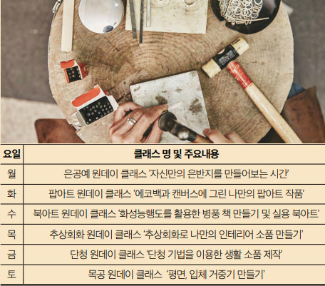 아트, 은공예, 단청 등 총 6가지 클래스로 구성된 아트포라 원데이 클래스