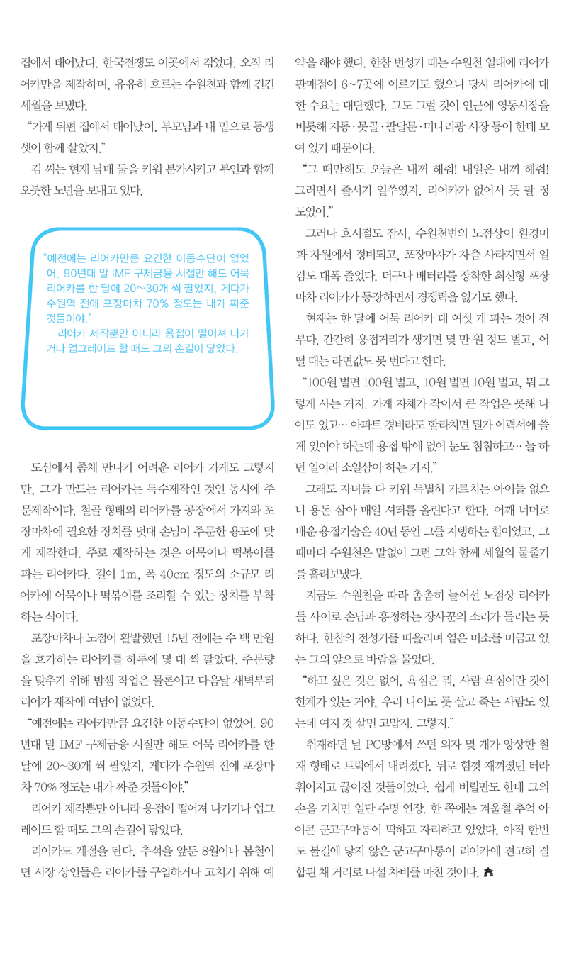 쉴새없이 굴러가는 리어카 바퀴인생(수원천의 흥원리어카)