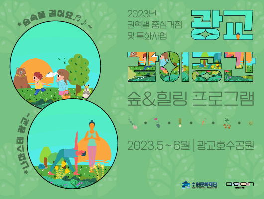그 중 생태 환경이 뛰어난 광교호수공원에서 숲&힐링 프로그램을 진행합니다.