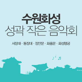 수원문화재단이 주최·주관하는 성곽작은음악회는 매주 일요일 오후 2시(화성행궁만 오후 3시 30분) 5개의 장소에서 실시하고 있습니다.