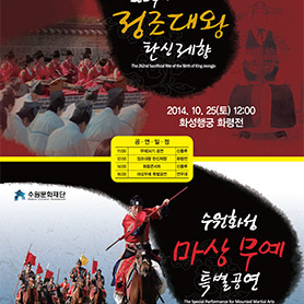 10월의 마지막 토요일, 수원화성에서 특별한 행사들이 펼쳐집니다. 10월 25일(토), 정조대왕 탄신제향과 마상무예 특별공연을 상설 프로그램과 연계하여 수원화성 관광공연 스페셜데이로 운영합니다.