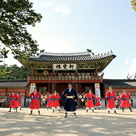 이곳 화성행궁의 북군영과 남군영에 주둔한 군사들 또한 무예24기를 수련하여 행궁호위에 최선을 다했습니다.화성 행궁의 복원과 때를 같이하여 우리 민족의 건강한 몸짓과 활달한 기상이 담긴 무예 24기 시연을 펼칩니다.