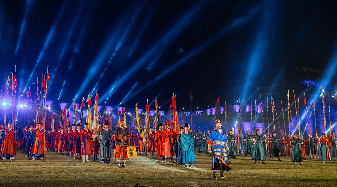 朝鮮後期を文化の黄金時代に導き、大きな復興を成し遂げた第22代正祖大王。正祖大王の孝心と富国強兵への意志、民を想う気持ちを込めて「乙卯年華城園幸」の原形を華やかに再現します。ソウル市の昌徳宮から水原を通って華城の隆陵まで、計59kmにわたる歴史上最も盛大で華麗な祭りの道が開きます。