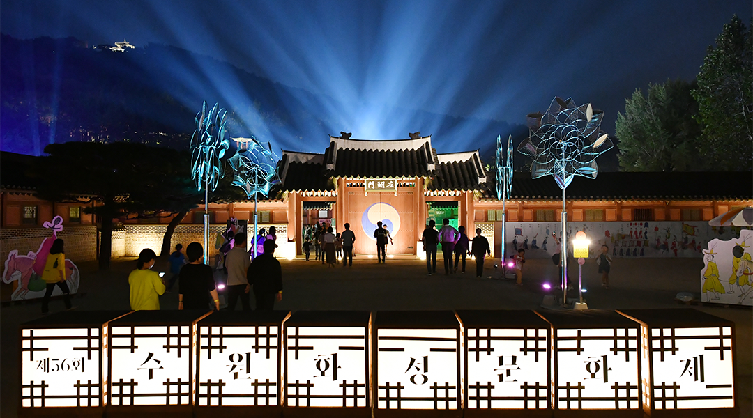 2020・2021文化観光祭りに選ばれた、水原市を代表する文化観光祭りで、朝鮮の第22代正祖大王の親孝行と富国強兵への遠大な夢によって築城された世界文化遺産の水原華城で、水・光の饗宴など、水原華城の各所を舞台にさまざまな公演と体験行事が行われます。