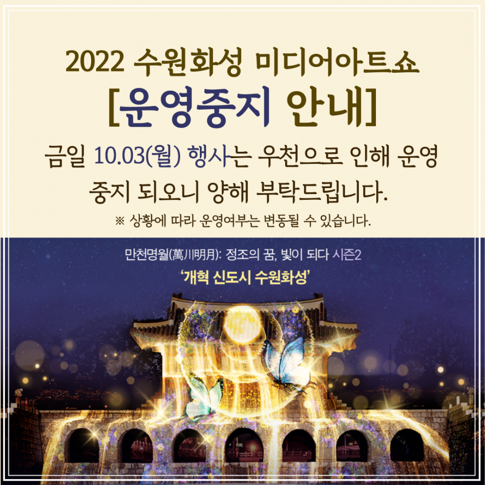| *10. 3.(월) 수원화성 미디어아트쇼 운영중지 안내* | ||