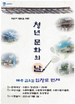 지난 9월부터 수원시는 매주 금요일을 청년문화의 날로 정해 문화시설 입장료를 면제하고 있다. 입장료 면제 혜택을 받을 수 있는 곳은 수원박물관, 수원광교박물관, 수원화성박물관, 수원시립미술관, 화성행궁으로 청년문화 의식을 높이고 문화 활동 참여를 활성화하기 위해 개정된 수원시 청년정책 중 하나다. 수원시에 거주하는 19~39세에 해당하는 청년이라면 누구나 청년문화의 날 혜택을 받을 수 있다.