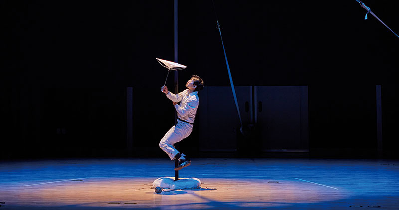 지난 8월 10일 오후 5시, 곧이어 시작될 현대서커스 <우산 아래>를 위해 빛누리아트홀 무대 위에는 긴 봉 하나가 우뚝 서 있었다. 서커스가 시작되자 무대 위 조명이 한 곳을 비추고, 흰옷을 입고 등장한 배우는 자신을 이렇게 소개했다.